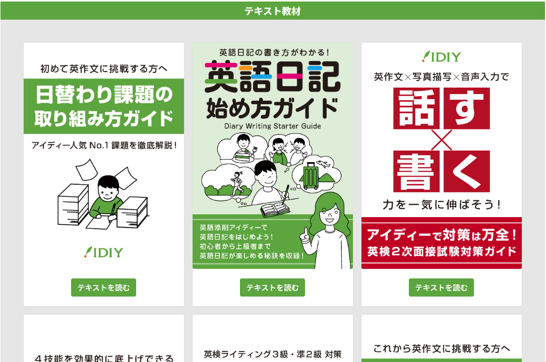 アイディーの英文添削サービスは、多くのお客様に、英検をはじめとする各種の英語テストの受験対策としてご活用頂いております。英検対策としてご利用されるお客様向けにテキスト教材をご用意しておりますので、ぜひご活用ください。